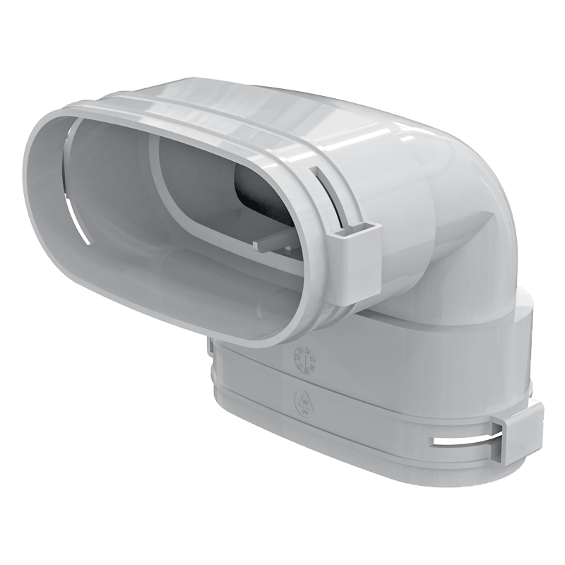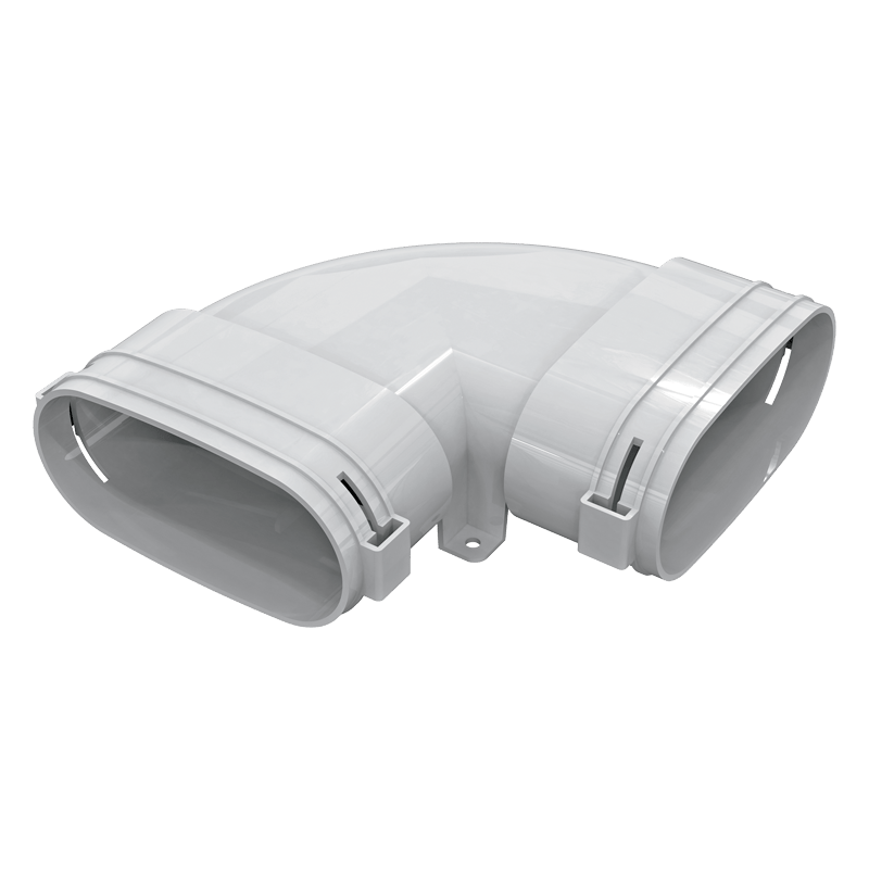Horizontálne koleno určené na zmenu smeru potrubia 52 mm v systémoch rozvodu vzduchu.